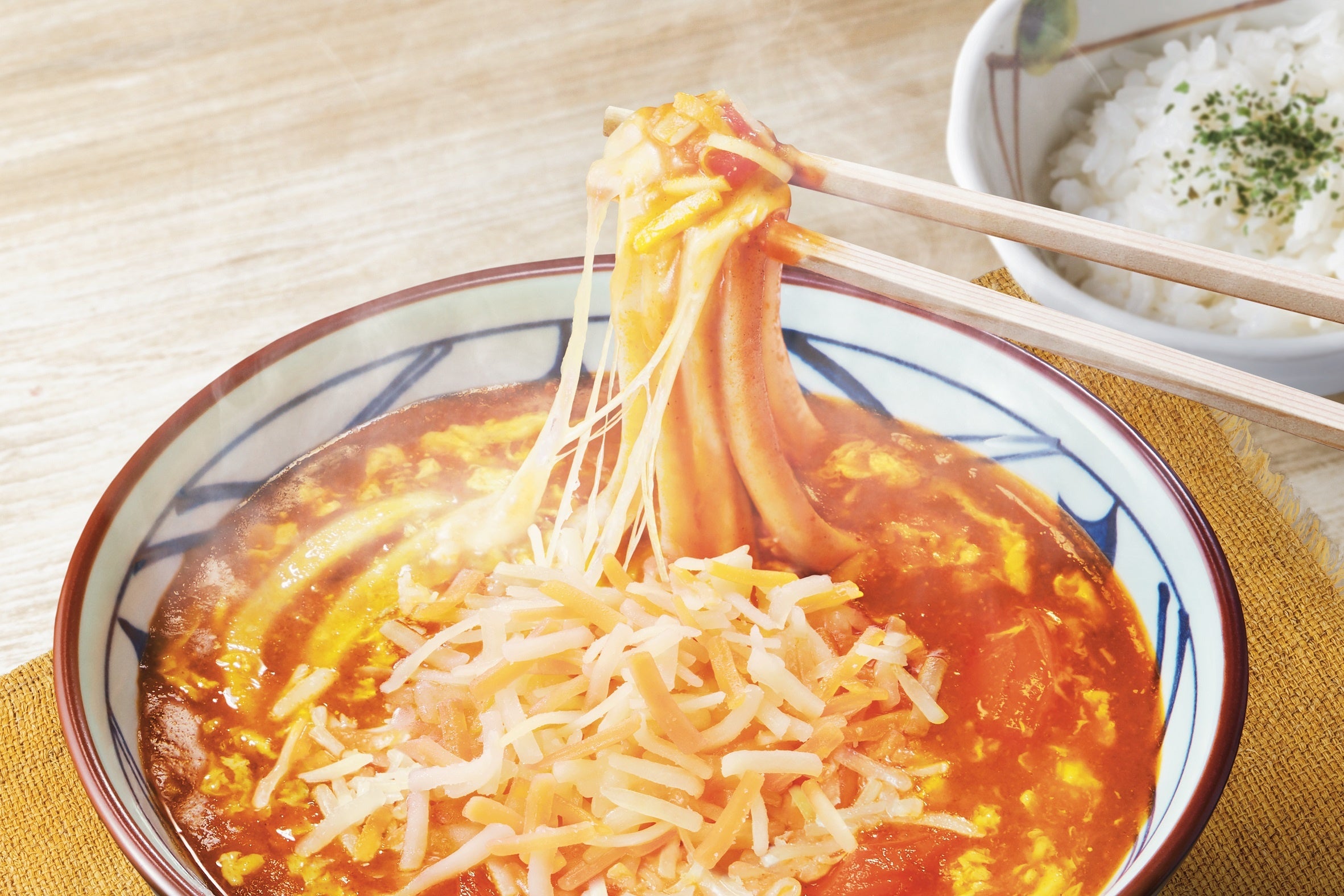 ・『とろけるチーズのトマたまカレーうどん』(ひと口ごはんつき)(並)920円、(大)1,080円、(得)1,240円