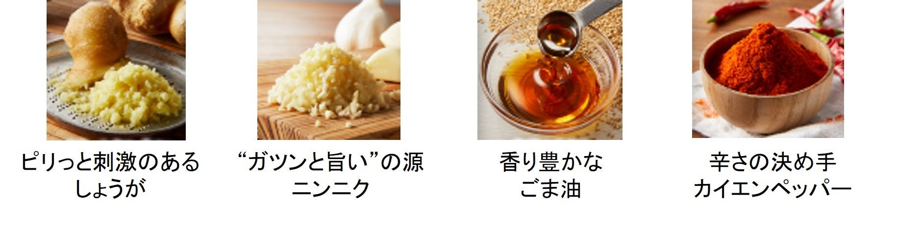 味わいの決め手は、特製味噌だし。コク・キレ・旨みを引き出すものを日本各地の数十種類の中から厳選しブレンドしました。隠し味としてコチュジャン、オイスターソースを加え、よりコク深いガツンとした味わいに仕立てました。仕上げの白胡椒がアクセントとなり、キリリと全体の味を引き締めます。