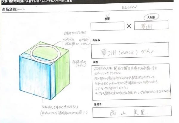 2025大阪・関西万博の会場となる夢洲をモチーフにしたようかんで、西山美里さん(環境都市工学部3年生)のアイデアです。