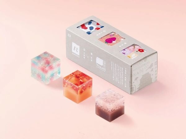 「パビリオン」は、大阪らしい遊び心と見た目のバリエーション、そして確かな味と食感をキューブの中にギュッと閉じ込めた、斬新な創作ようかんです。