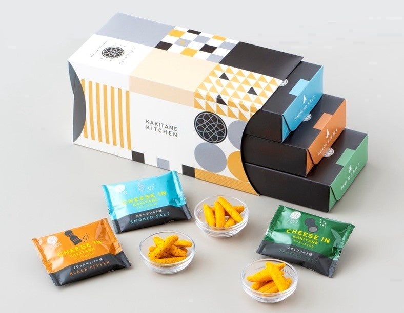 カリッとした生地の中に、やさしい口どけのチーズクリームを詰め込んだ「進化系」柿の種。3種類のフレーバーを銀座三越限定パッケージに詰め合わせた、てみやげにぴったりのセットです。