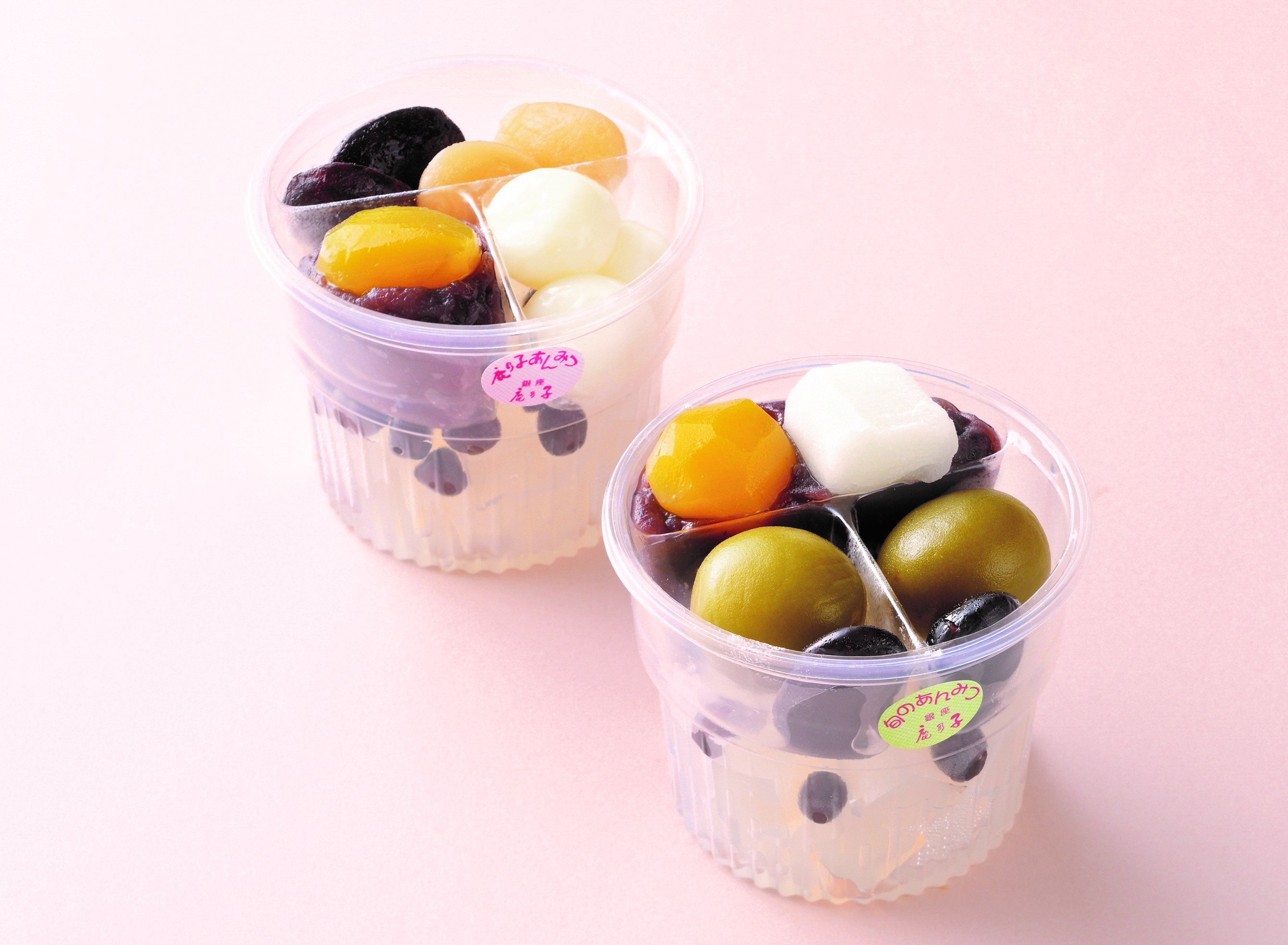 かのこ、あんみつの専門店として愛されつつも、2020年に本店が閉店。現在、常設の実店舗は銀座三越のみという希少な老舗の甘味たちです。<銀座鹿乃子>本店で愛されたあんみつを復刻。自家製のつぶし餡に、栗、紫花豆、白花豆、虎豆の甘露煮、白玉を添えました。和菓子好きにはもちろん、かつてのお店に思いを馳せる方にも喜ばれるひと品。 <銀座鹿乃子>画像奥:元祖鹿乃子あんみつ 648円(1個)、画像手前:旬のあんみつ「梅」 670円(1個)※季節により果実の種類、価格が変わります。■本館地下2階 和菓子