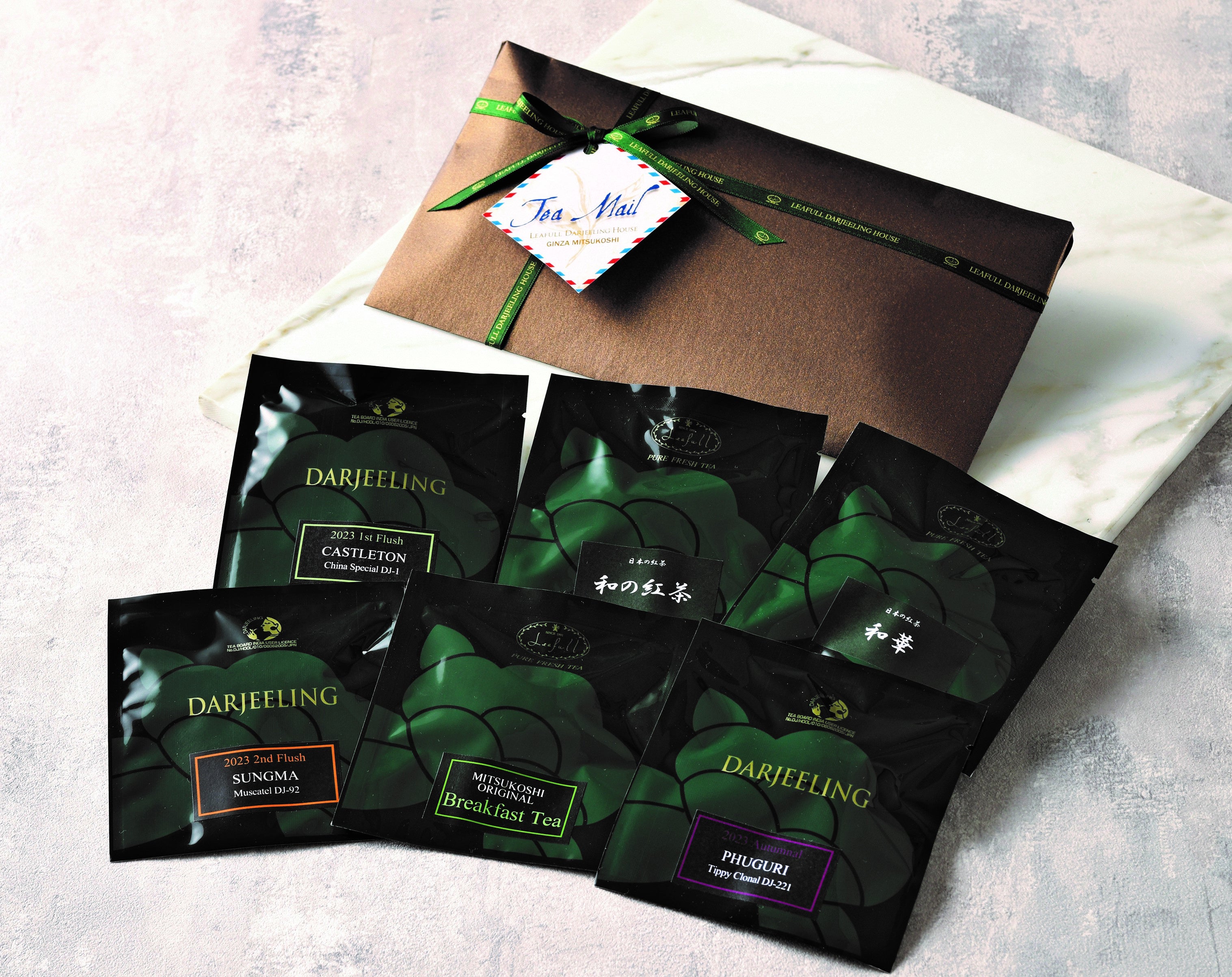 3シーズンのダージリンに、銀座三越限定の和紅茶2種と、オリジナルでブレンドしたブレックファーストティーを加えたセット。 <リーフルダージリンハウス>銀座三越限定 ティーメールピトレティーバッグ 6種セット 1,944円(3gピト レティーバッグ 6種×各1袋/6袋入)■本館地下2階 GINZA ティー