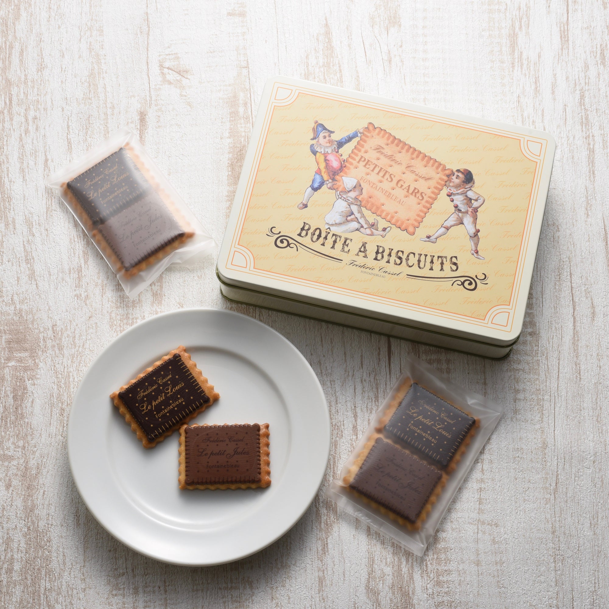 パリ郊外に本店を構えるパティシエ・ショコラティエ。日本の常設店は「銀座三越だけ」という特別感も魅力です。フランス産小麦と国産バターを使った少し固めのビスキュイにダークとミルク、2種類のチョコレートをそれぞれトッピング。 <フレデリック・カッセル>ボワット・ア・ビスキュイ(ダークチョコ「プティ・ルイ」×8枚、ミルクチョコ「プティ・ジュール」×8枚/日本製)4,320円 ■本館地下2階 洋菓子