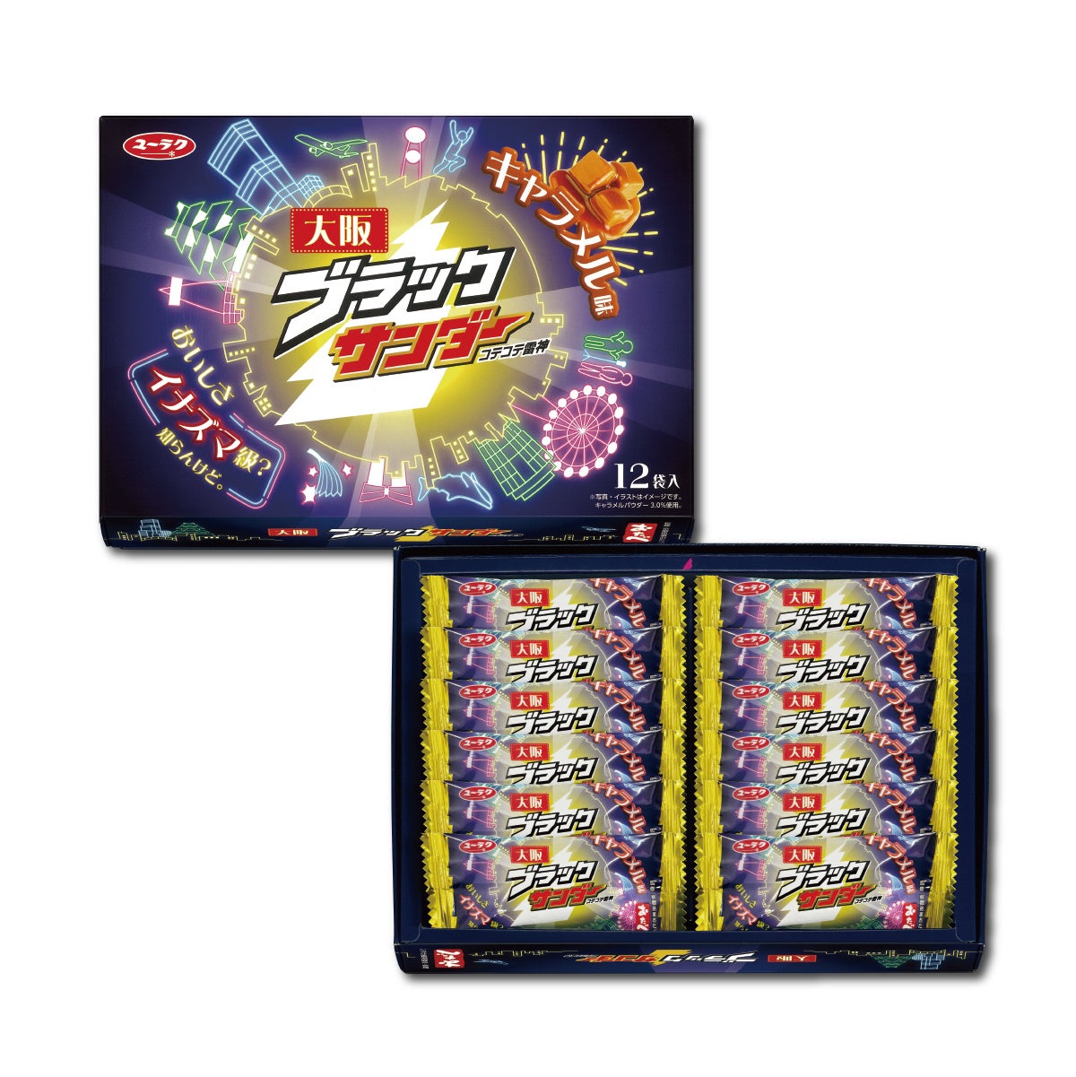 ブラックサンダーのザクザク食感に、キャラメルパウダーを練りこんだチョコレートをコーティングした、大阪らしい「コテコテ」なおいしさを楽しめるブラックサンダーです。パッケージも大阪の街並みをイメージしたデザインとなっており、大阪の世界観を大いに感じられる商品です。