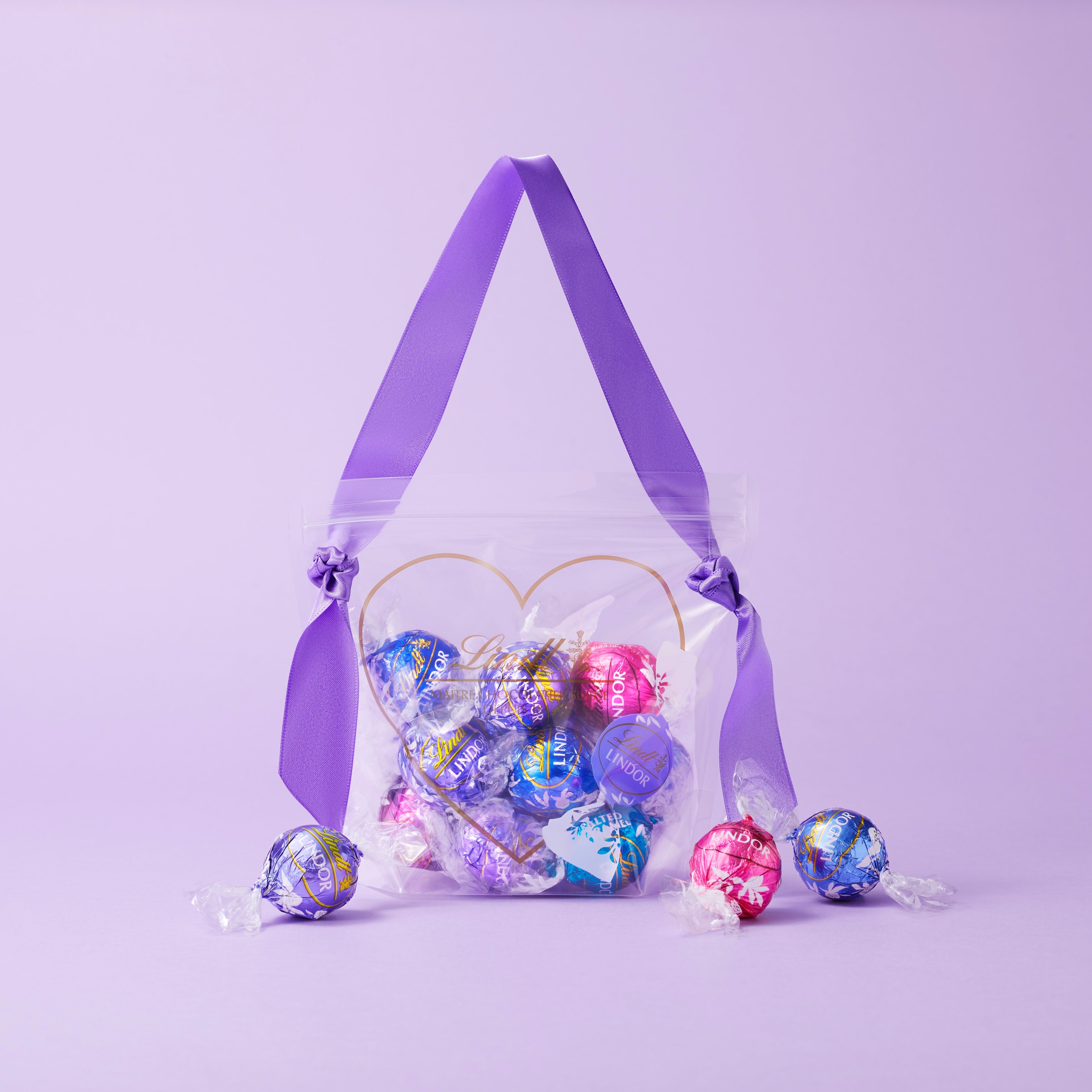 大好評につき、リンドールが約15粒入る“推し活” アイテム「PICK&MIX 推しカラーバッグ」は継続販売いたします。さらに新色として「パープル」が登場!20種類以上あるカラフルな包みのリンドールから、推しカラーやお気に入りフレーバーを組み合わせて世界に一つだけのギフトを作ってお楽しみください。推しへのプレゼント用にはもちろん、自分用や一緒に推し活を楽しむ友人用など、幅広い用途でご利用いただけます。