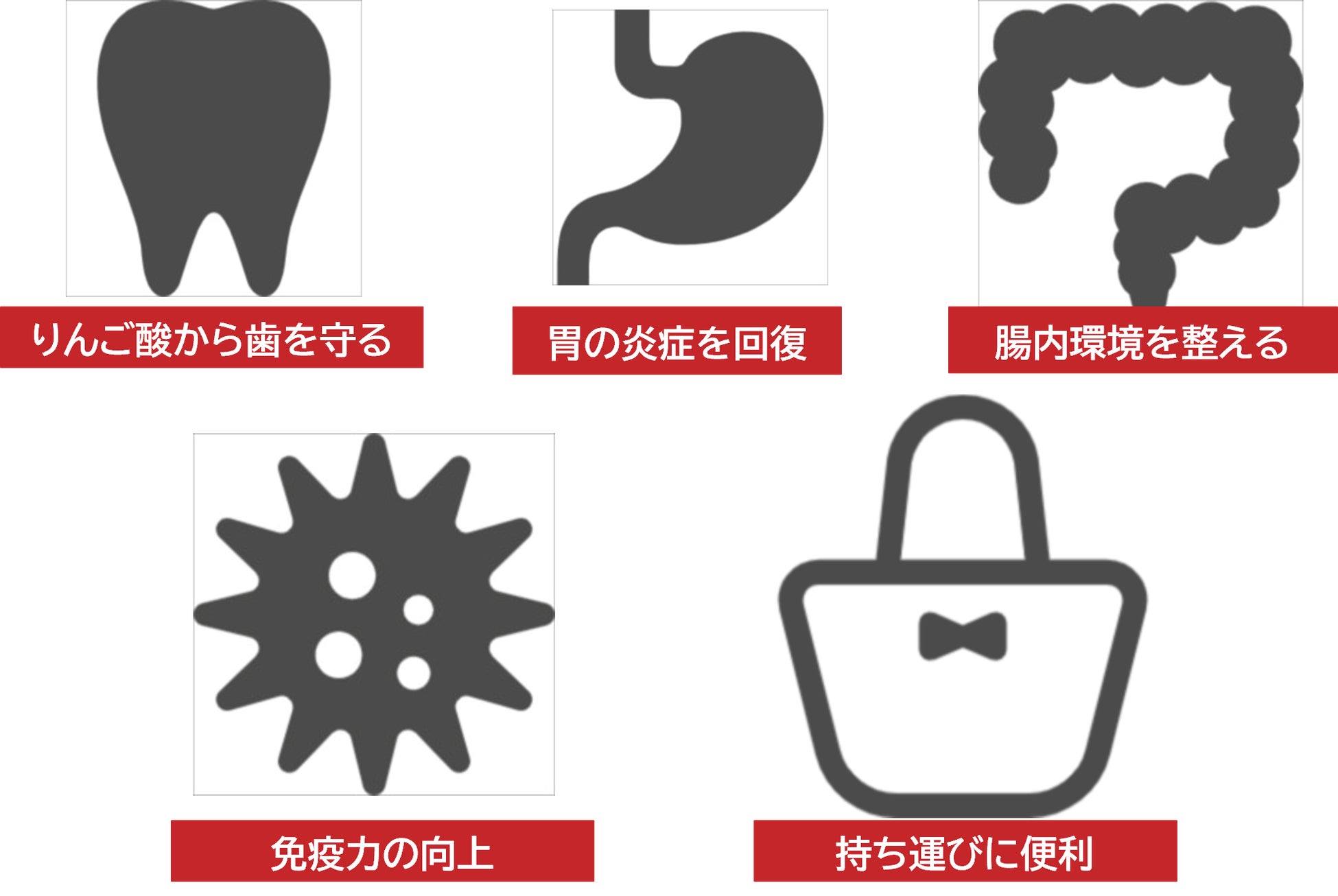 上記のデメリットを軽減しつつ、「りんご酢」から得られるメリットを摂取できます。