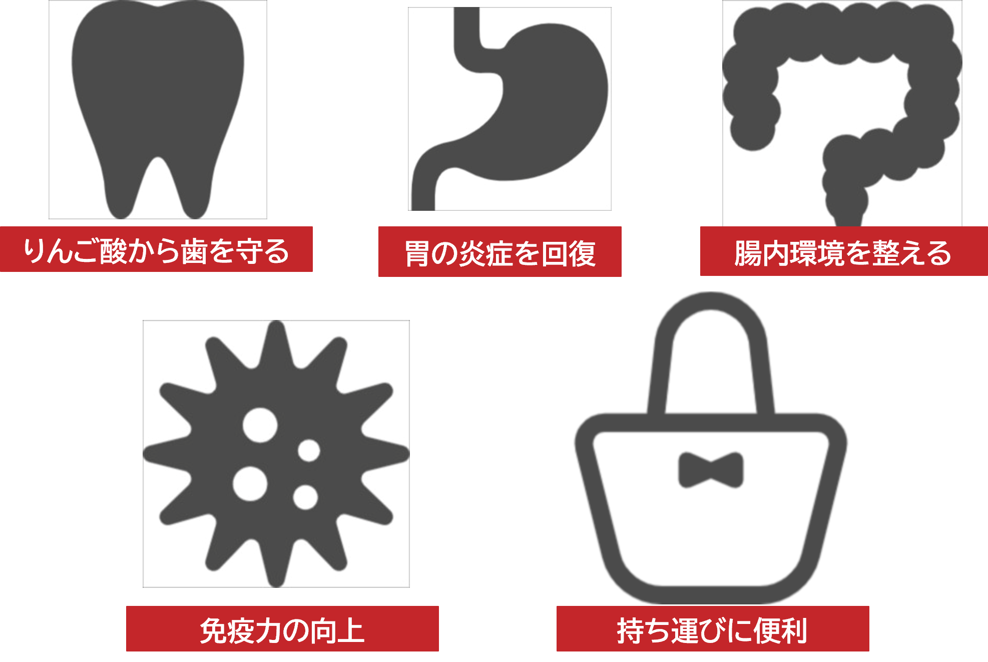 上記のデメリットを軽減しつつ、「りんご酢」から得られるメリットを摂取できます。