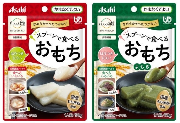 ・ラインアップは、『バランス献立 スプーンで食べるおもち』『バランス献立 スプーンで食べるおもち よもぎ』です。