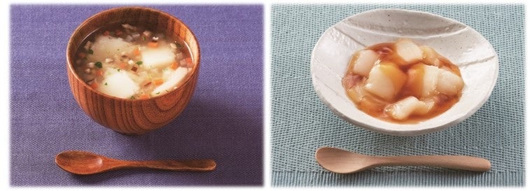 『バランス献立 スプーンで食べるおもち』は、2023年9月4日に発売した介護食で、餅の特性である伸びや付着性を抑えたなめらかでべたつかないのが特長です。