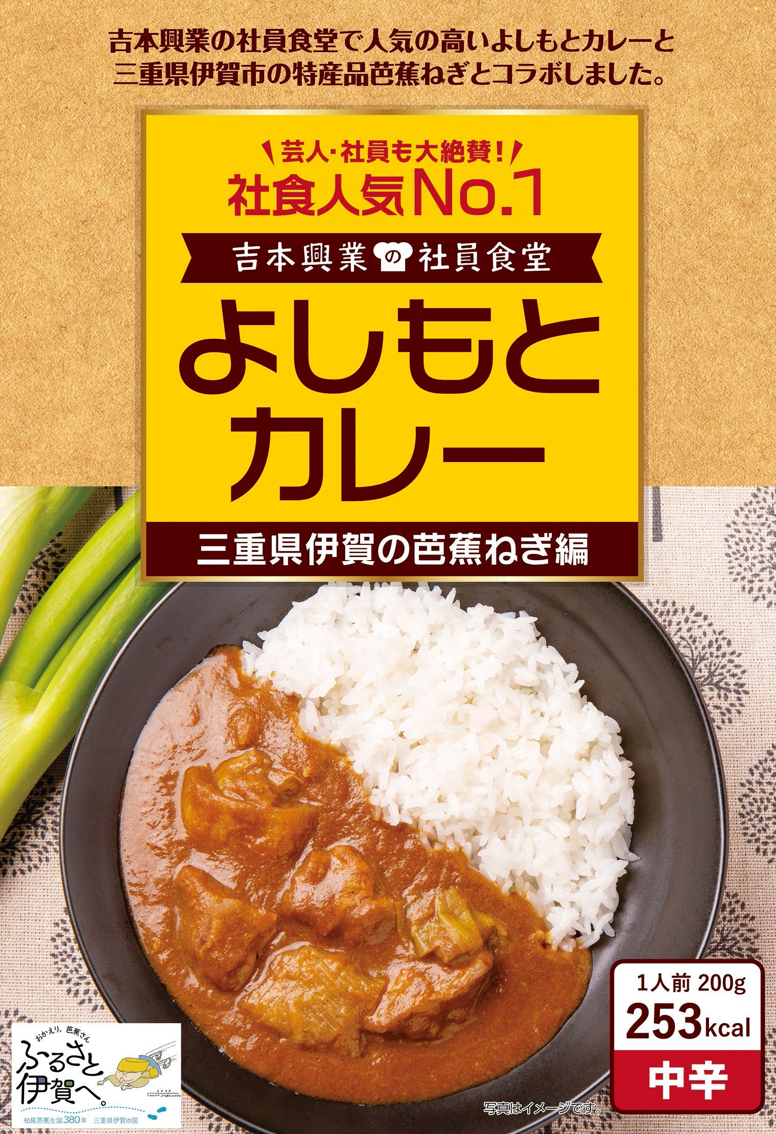 吉本興業東京本部にある社員食堂で最も人気の高いメニュー「よしもとカレー」と、三重県伊賀市の地域食材である「芭蕉ねぎ」を贅沢に使ったコラボレーション商品『よしもとカレー 三重県 伊賀の芭蕉ねぎ編』 が完成し、4月20日(土)に発売されます。