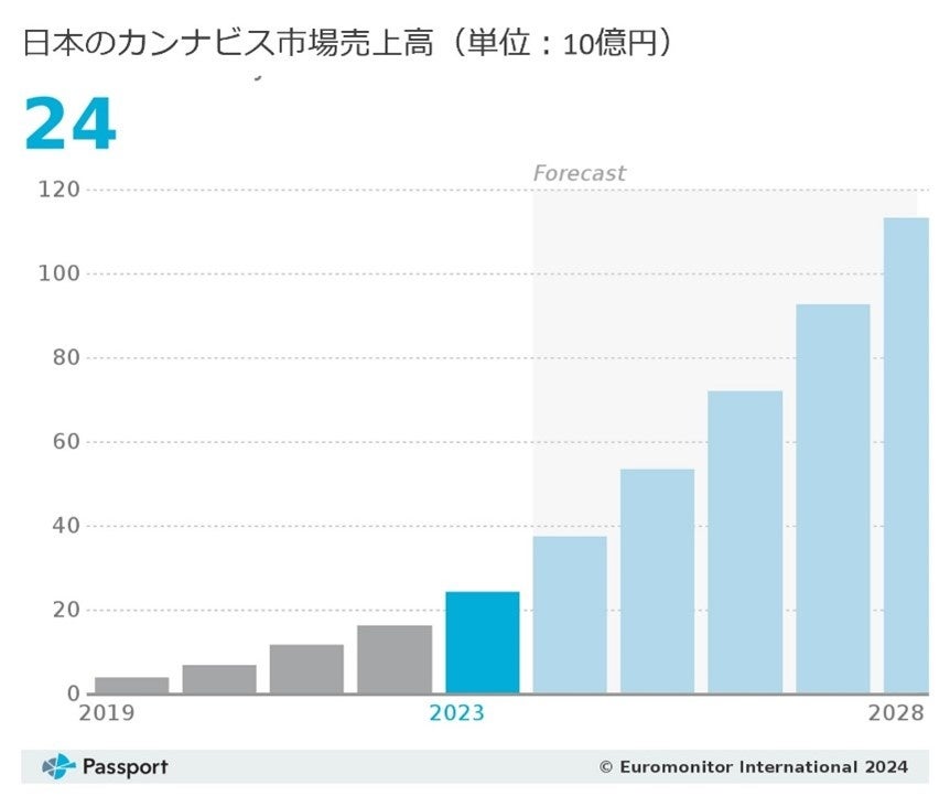 日本のCBDおよびその他非中毒性カンナビノイドの合法市場は、2023年に前年から49%増加し240憶円に到達