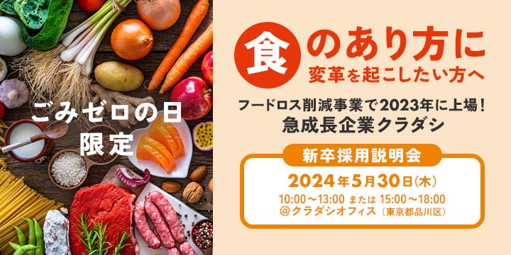 そんなクラダシが開催するのが、「食」のあり方の変革にフォーカスした2025年度の新卒採用イベントです。フードロス削減という既存の枠組みに囚われていては解決できない問題を次世代の力でさらに解消していくために、2025年度も新卒入社者を募集します。