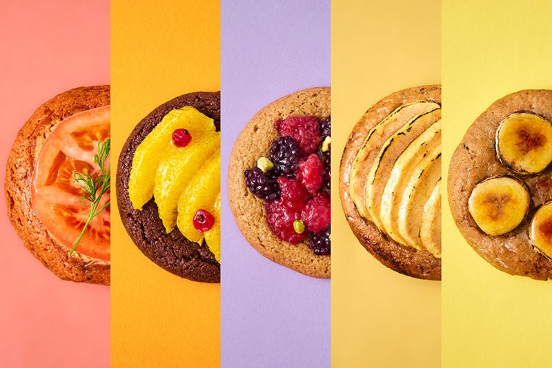 色と色とを掛け合わせ、新しい色を作っていく”パレット”のように。二層の食感の異なる生地を重ね、フルーツ等のフレッシュな素材を組み合わせた「クッキーパレット」。焼きたて生地とフレッシュな果物や野菜を重ね合わせることで、頬張るごとに新たな食感がありながら、食材同士の一体感をお楽しみいただけます。また、「クッキーパレット キャラメリゼ」はお客様の目の前でキャラメリゼし、冷たいアイスを添えます。芳ばしい香りとともに、口いっぱいに広がる深い味わいをご堪能いただけます。さらに各商品名は、パレットにちなみ、メニューの象徴的な色味をフランス語で表しています。アートとお菓子の世界を体感いただけます。