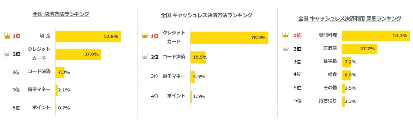 全国における決済方法では引き続き現金が52.8%で第1位となった。