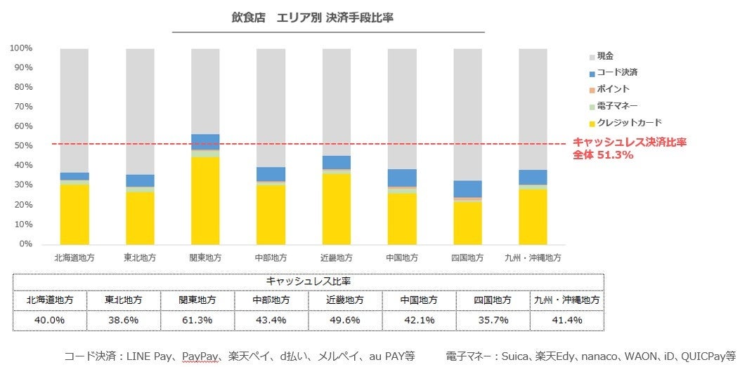 キャッシュレス決済比率は全国で51.3%と、先月から4.2ptの増加となった。