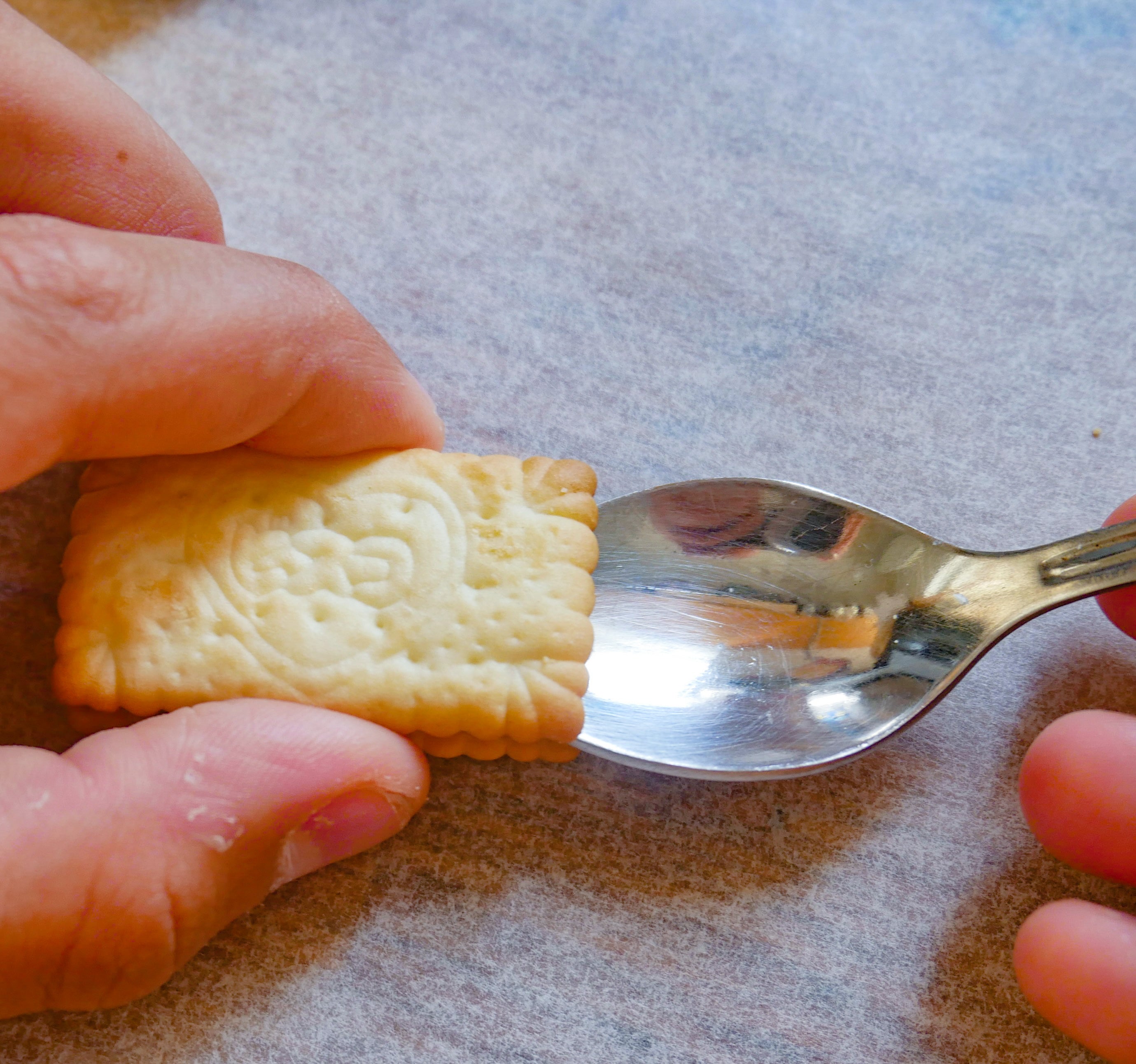 ハート型のクリームをきれいに残すビスケットのはがし方、ワンポイントテクニック!