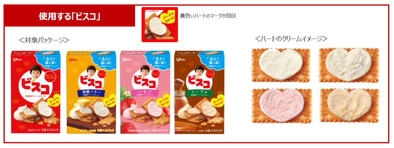 ※取り扱い店舗の在庫状況に応じて順次、ハートのクリームの「ビスコ」へ切り替わります。在庫がなくなり次第終了とさせて頂きます。
