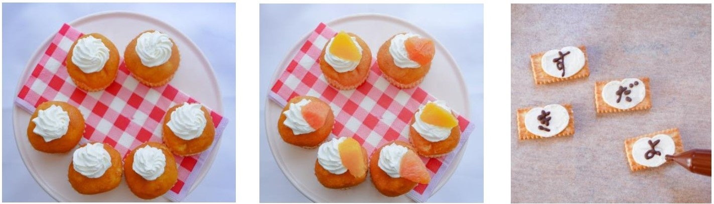 カップケーキやフルーツを使って華やかなデコレーションを楽しみながら、チョコレートペンで「ママすきだよ」などお母さんへのメッセージを入れた、世界に一つだけのオリジナルレシピ。「ママすきだよ」や「ママありがとね」など、家族で一緒にメッセージを考えるのも愛が溢れる時間に。そしてママは感動すること間違いなしです!
