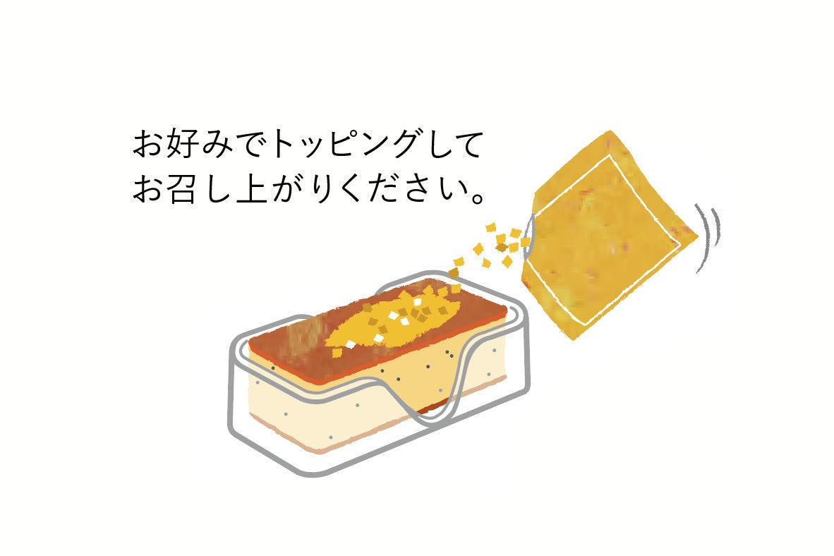 通常の文明堂のカステラに敷いているザラメは、しっとり感を維持するために、日を追うごとに溶けていきますが、このカラメルシュガーは別添えで後からトッピングできるタイプですので、あのザラメのような“シャリッと”食感をしっかり楽しむことができます。