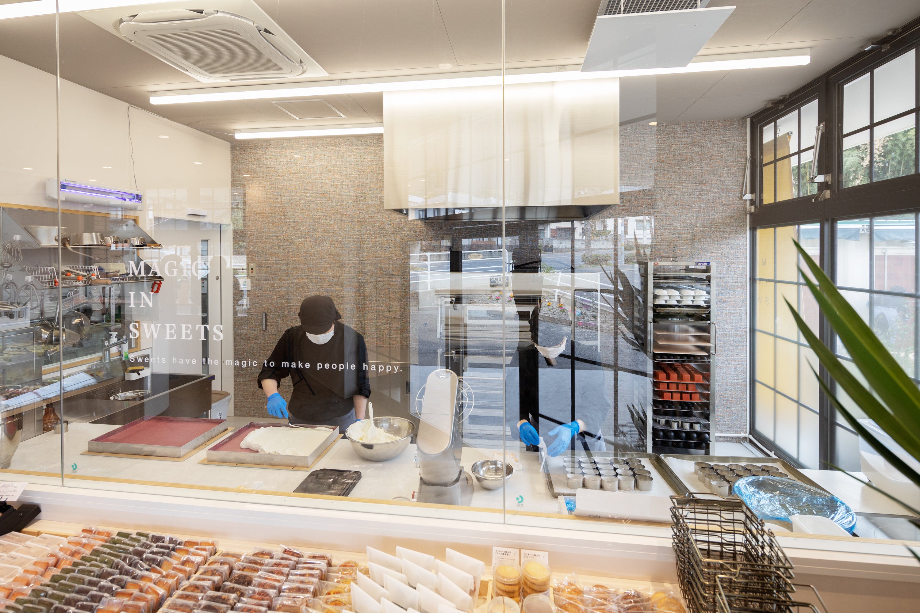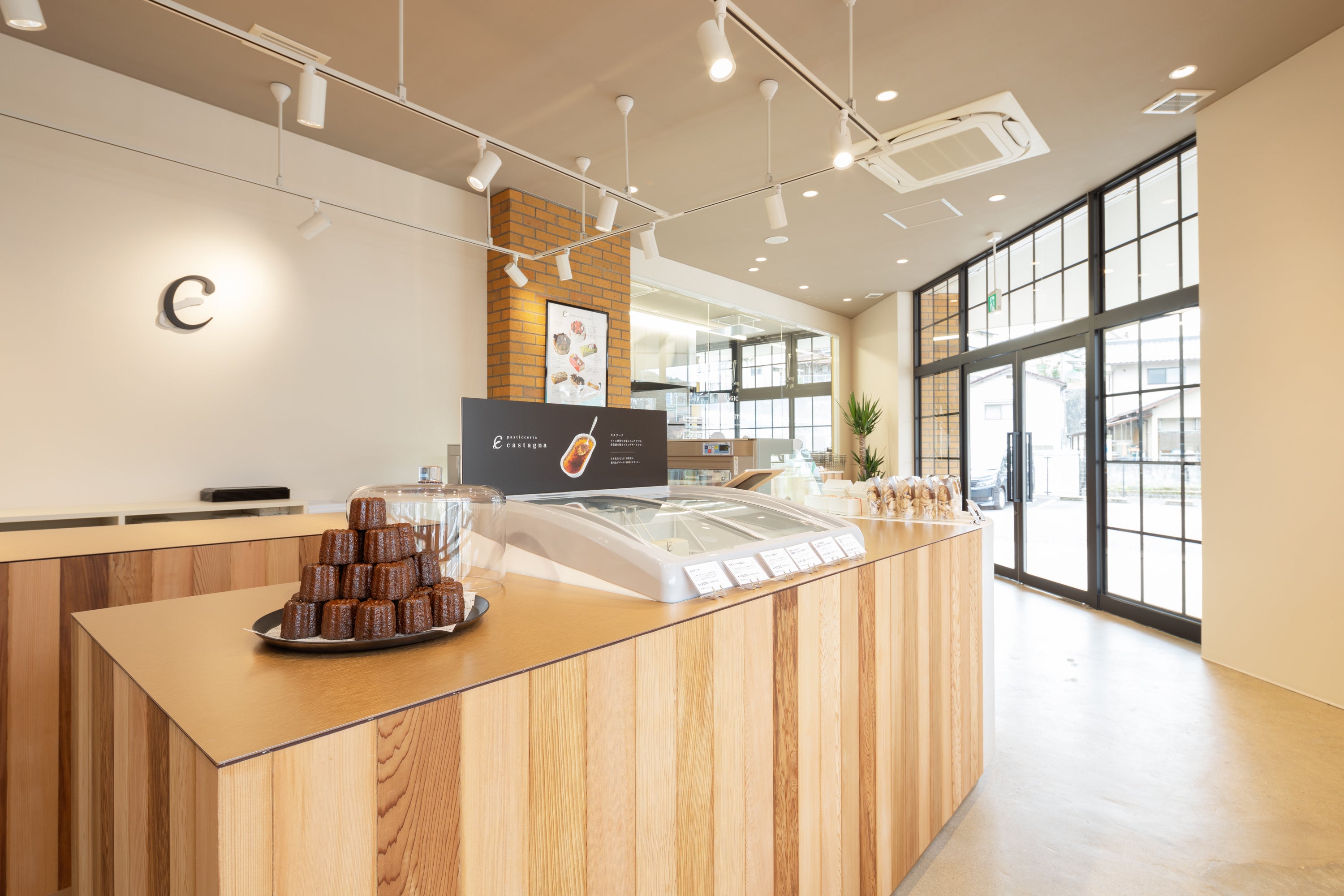 カスターニャ福田本店は、「立町カヌレ」などを手がけるカスターニャが、ケーキなどの生菓子を初めて取り扱うお店です。コンセプトは「MAGIC IN SWEETS ~お菓子には魔法がある~」。「おいしいお菓子でみなさまの笑顔あふれるシーンをつくりたい」という想いが込められています。店内はそんなお菓子づくりの様子が見られる大きなガラスも配置しました。ケーキを一つ一つ丁寧に仕上げるパティシエたちの様子を、お近くでご覧いただけます。カスターニャの原点、福田という地で、地元の方々から愛されるお店を目指します。