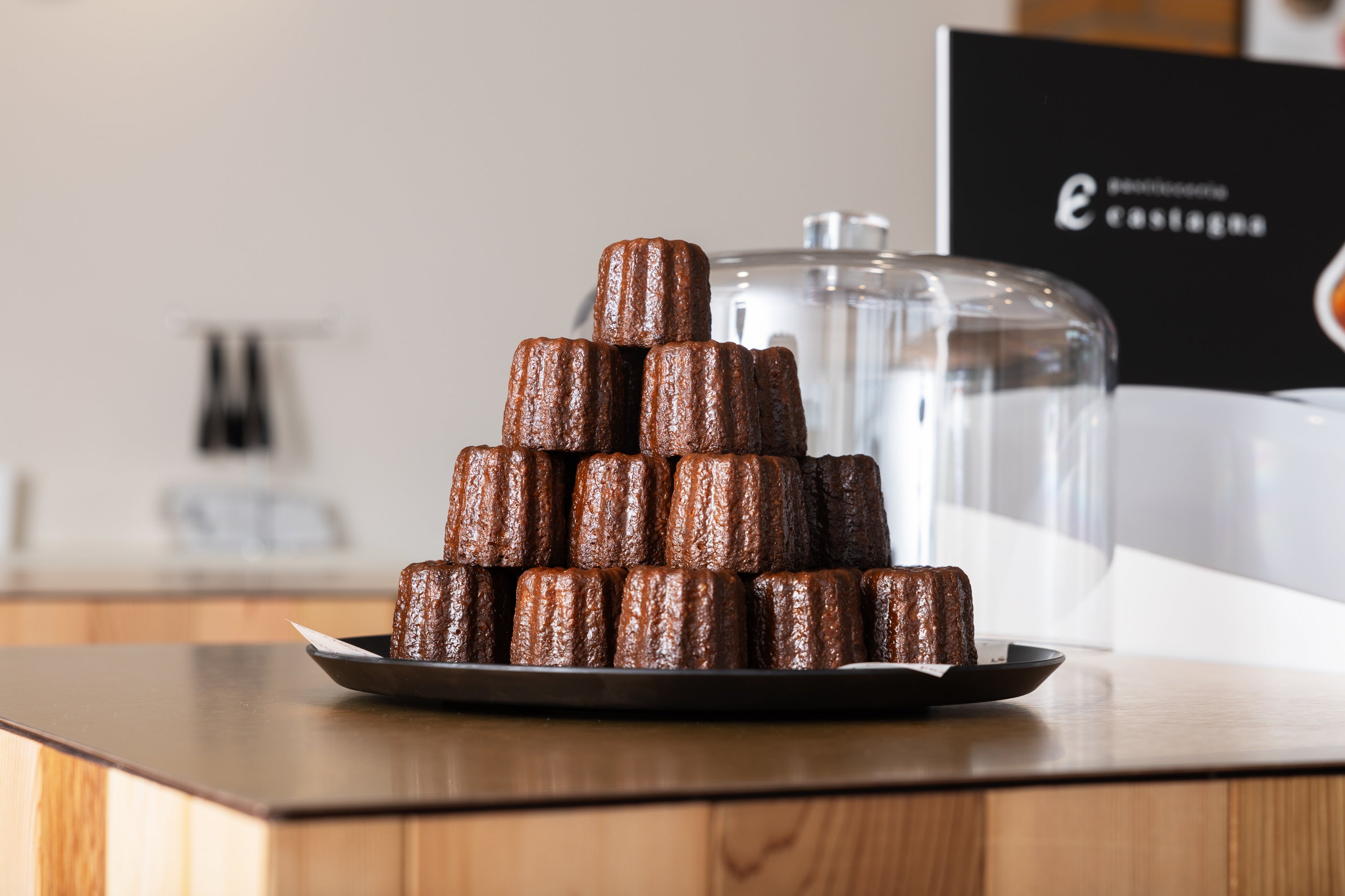 「立町カヌレ」を展開する同社おすすめの商品。バニラとラム酒の香る、外がカリッ、中がしっとりとした焼きたてのカヌレはカスターニャ福田本店でしか味わうことができません。「焼きたてカヌレ」は店内にてドリンクとセットでお召上がりいただけます。毎日12時には焼きたてフィナンシェも数量限定で登場。こちらは香ばしい風味が特徴で、アーモンドと濃厚なバターのコクをお楽しみいただけます。