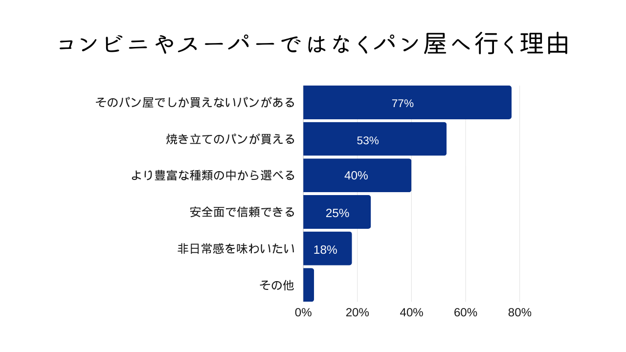 80%以上がパン屋に行く理由として品揃えの良さに言及しており、
