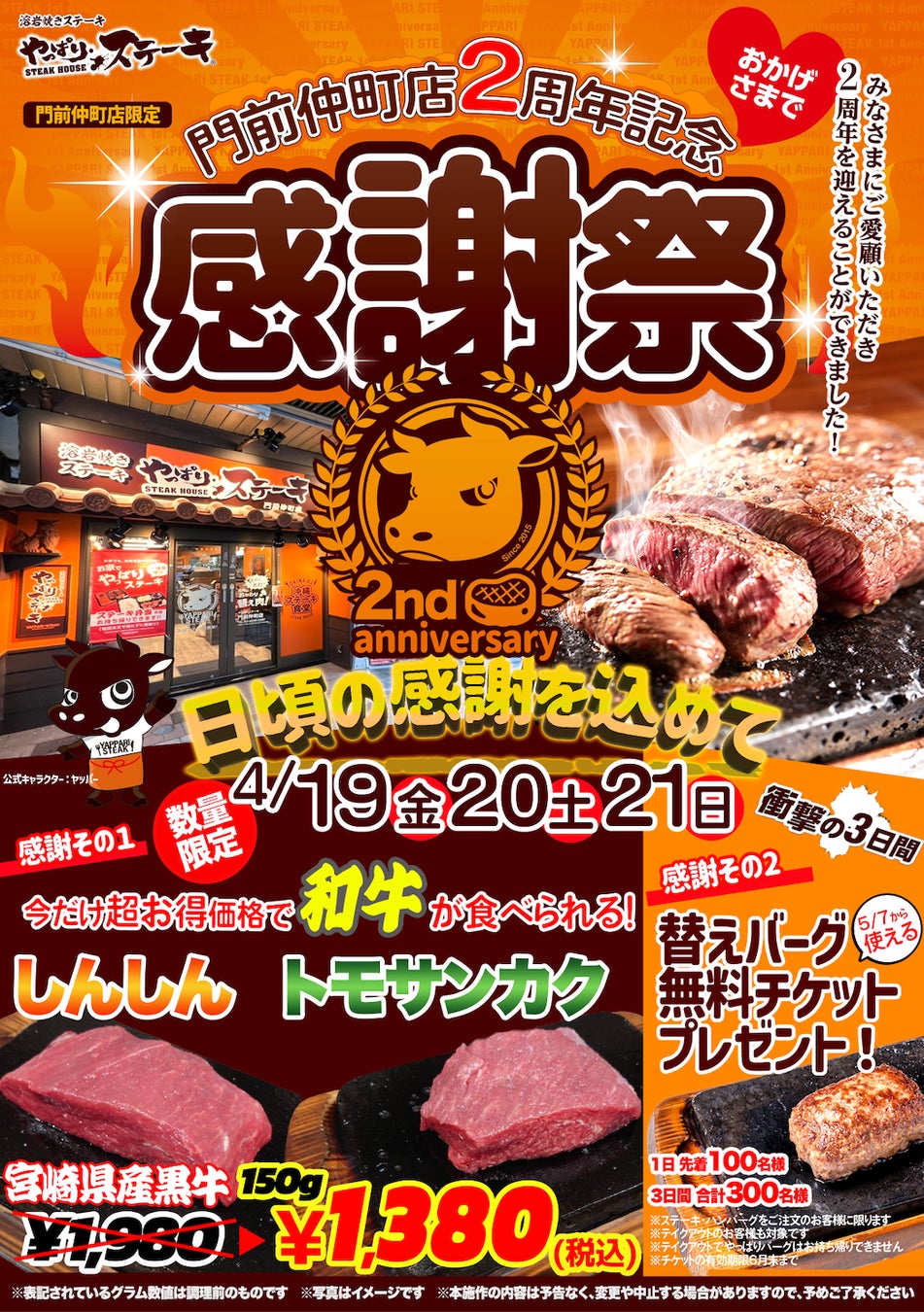 2022年4月20日にやっぱりステーキ門前仲町店がOPENしてからおかげさまで2年が経ちます。