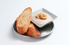 Dole Mottainaiグリーンバナナを使った、見た目はマッシュポテトのような一皿。添えられたバゲットにつけていただくのがおすすめの食べ方。