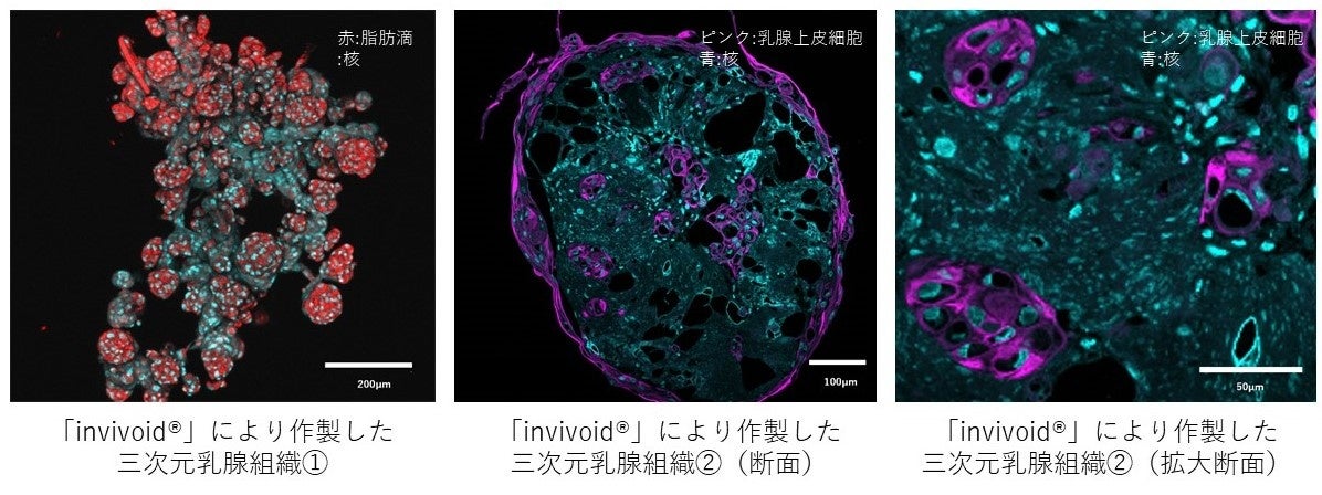 3D細胞培養技術「invivoid®」を活用した三次元の乳腺組織から乳汁様物質生成を確認乳がん患者の乳腺組織の再建や培養ミルクの生産を目指す