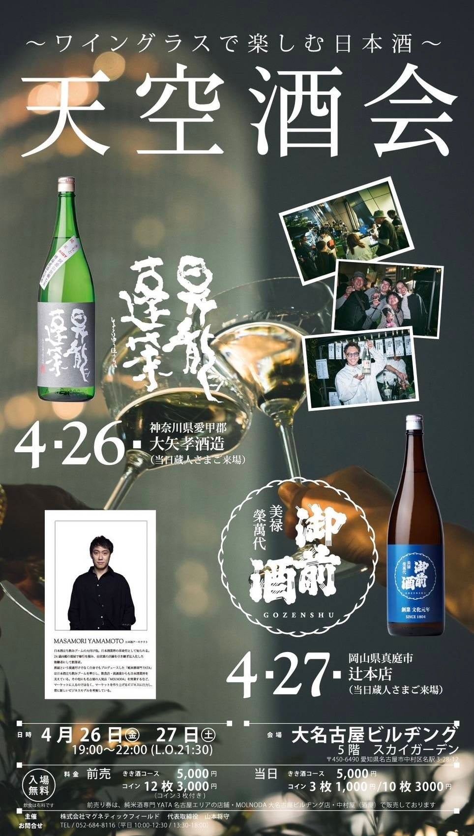 株式会社マグネティックフィールド(所在地:愛知県名古屋市、代表取締役:山本将守)は、2024年4月26日(金)、27日(土)の2日間、大名古屋ビルヂング 5F スカイガーデンにて、 リーデル純米グラスで日本酒を気軽に楽しめるイベント「天空酒会(てんくうさかい)vol.4」を開催します。
