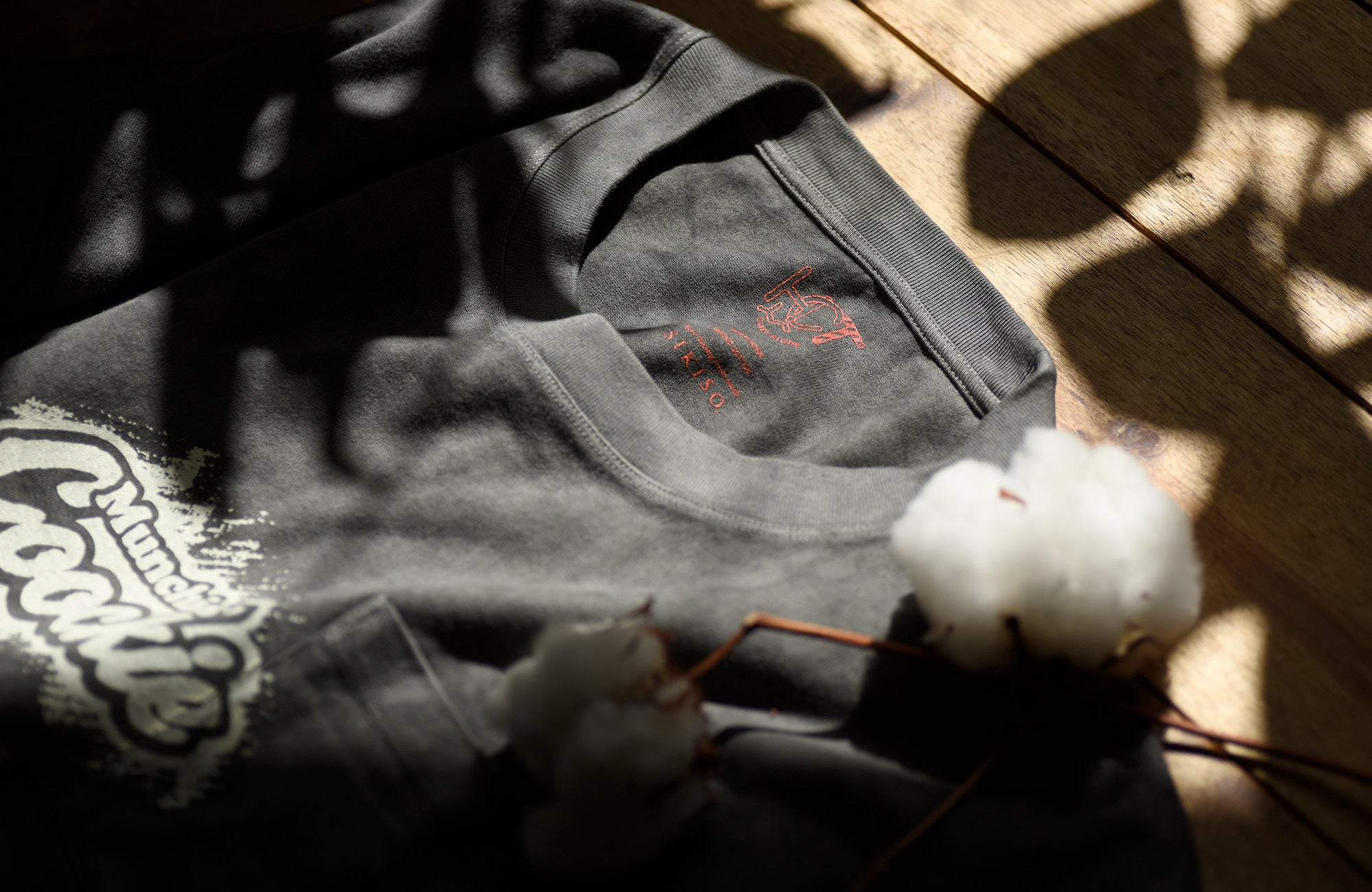 「環境配慮×VINTAGE」に造詣の深いブランド【years drope |イヤーズドロープ:東京都目黒区】の監修のもと、身生地のみならず、首元のフライスから縫製糸までもオーガニックコットンを使用することで100%オーガニックのオリジナルボディを製作しました。ここまでオーガニックを追求する理由は、もちろん「化学繊維を使うことなく、限りなく自然に近い素材選びをする」ことではありますが、一番の理由には「着心地への差を追求した結果」です。農薬を一切使用せずに生産される有機コットンは繊維の空洞がシボみずらく、空気をふっくら含む状態で糸になります。そのことから、夏場の清涼感と冬場の防寒性の両面あることや、肌触りが良い生地に仕立てられるメリットがあるのです。