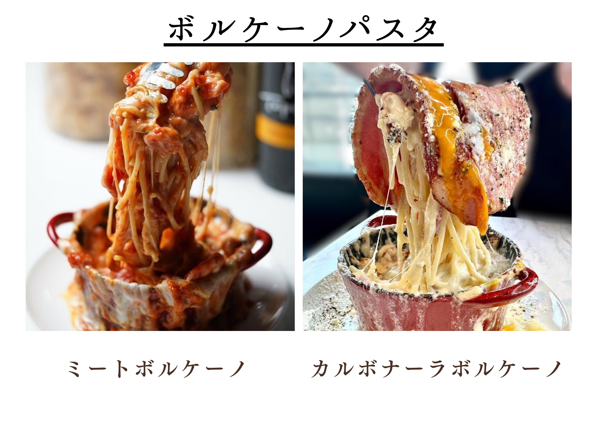 一枚麺の肉ボナーラ、ボルケーノパスタやシカゴピザをお楽しみいただけます。