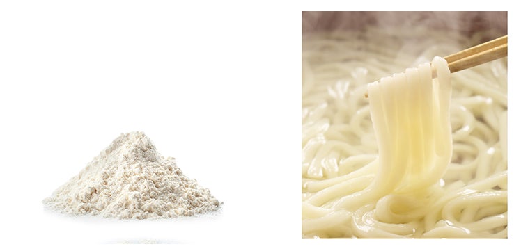 うどんをはじめとする麺製品は、調理が簡便である一方、それだけでは栄養バランスに不安を感じる方も多くおられます。栄養素を補うためにたん白質を配合した麺製品も多数上市されていますが、原料によっては、麺の成型がしにくい、麺本来の食感が損なわれる、加熱調理時にたん白質が水分中に溶出してしまうといった課題がありました。