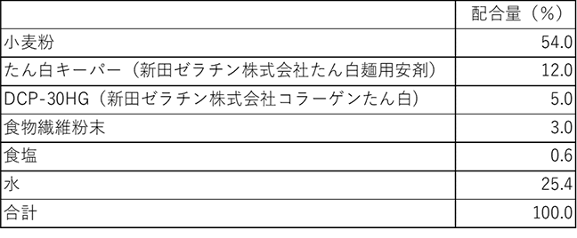 これに対し、新田ゼラチン株式会社が開発した「たん白キーパー」(以下「本品」という)は、コラーゲンたん白との併用により、たん白質を含む麺製品の製造ができるたん白麺用安定剤です。