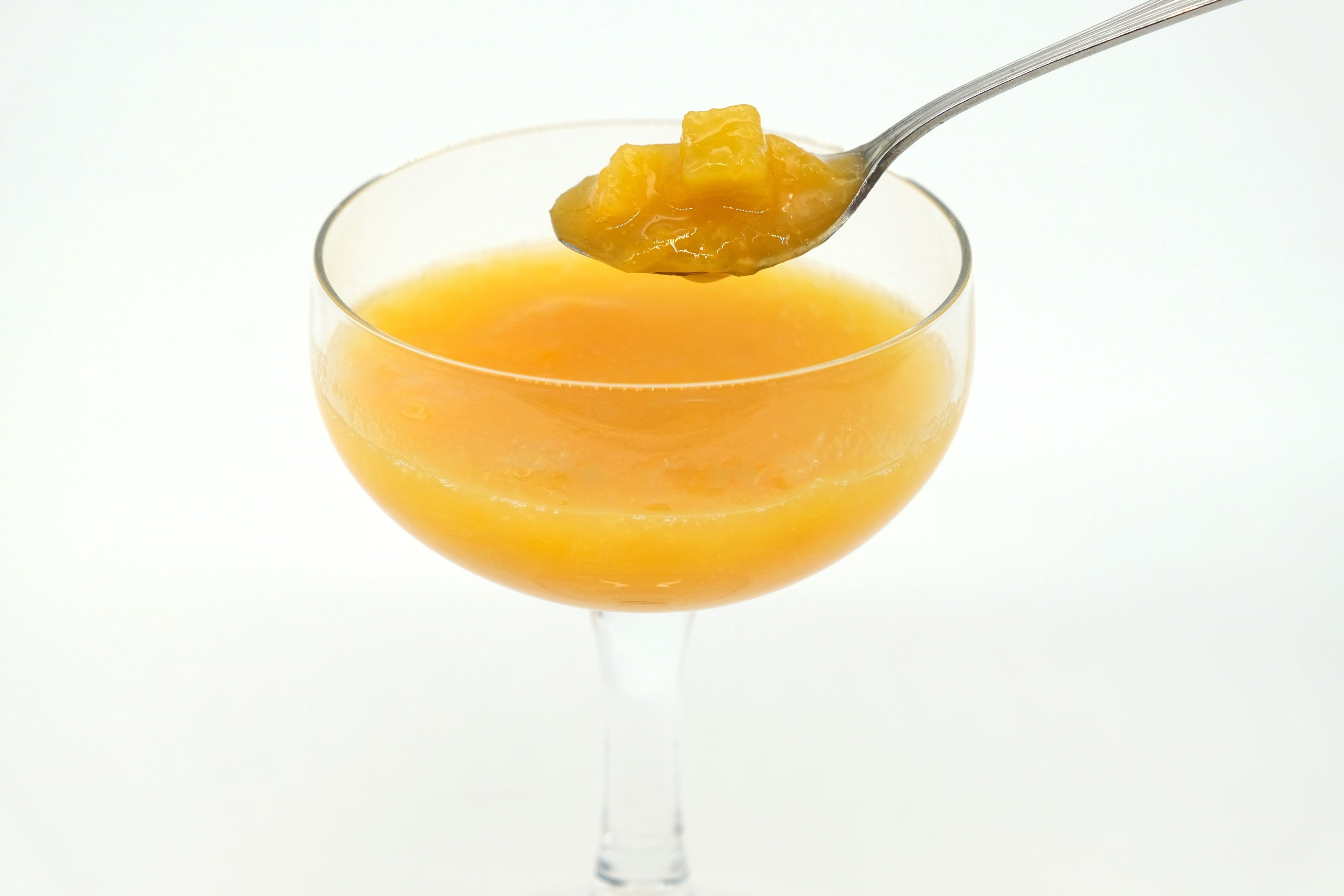 桃の繊維を感じるテクスチャーとジューシーでしっかりとした肉質の黄桃果肉のダイスカット&すりおろしを入れ、口当たりの立体感を演出しました。さらに、白桃ピューレでなめらかさを出し、果肉感をまとまりとして感じられるようにしました。果肉たっぷりの濃厚で、丸みのある柔らかな味わいが特徴です。