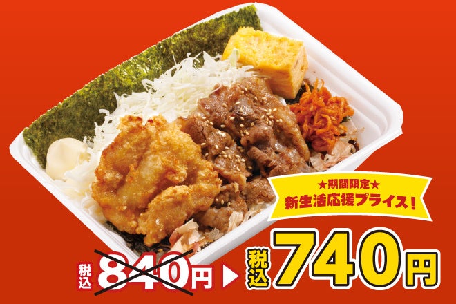 お客様に感謝を込めまして、2024年4月22日(月)から期間限定で看板メニューの「焼肉のり弁」840円(税込)をなんと100円引きの740円(税込)で販売致します。