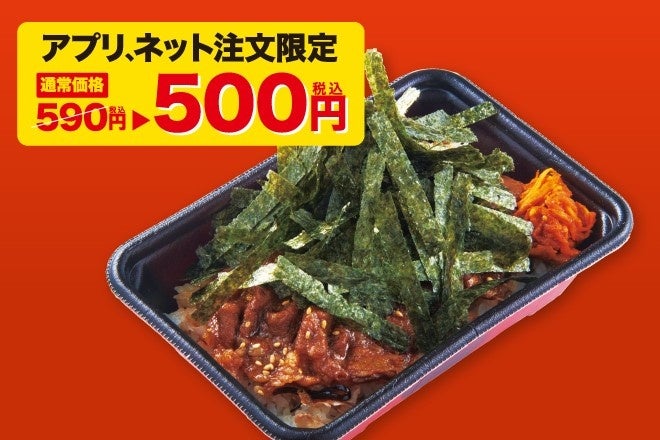 さらに、アプリ・ネットからのご注文限定で「のりカルビ弁当」590円(税込)がワンコインの500円(税込)でご購入いただけます。