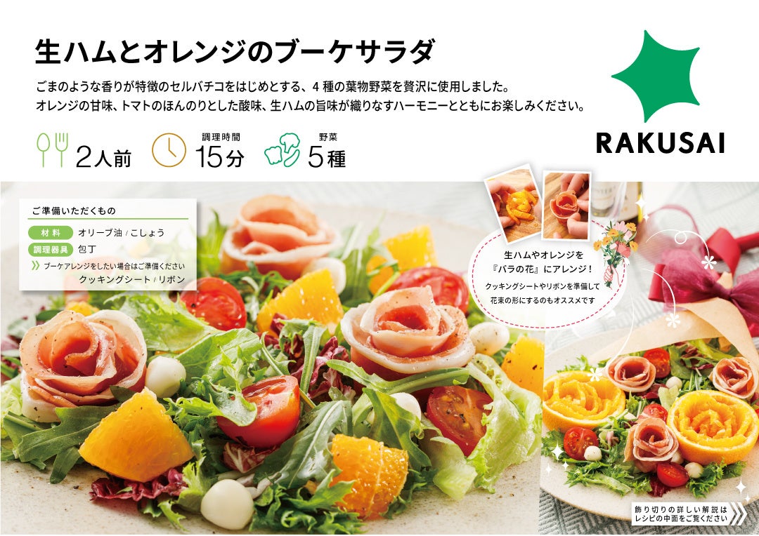 RAKU=楽(ラク・たのしい)、SAI=彩(食卓を彩る)「おいしくてカラダに良いものを楽して・楽しく食べていただきたい」という願いから、新鮮でおいしい野菜を食卓にお届けする会社です。青果物流通業のリーディングカンパニーであるデリカフーズグループだからこそ、安全でおいしい最高品質の野菜のご提供を可能にしています。