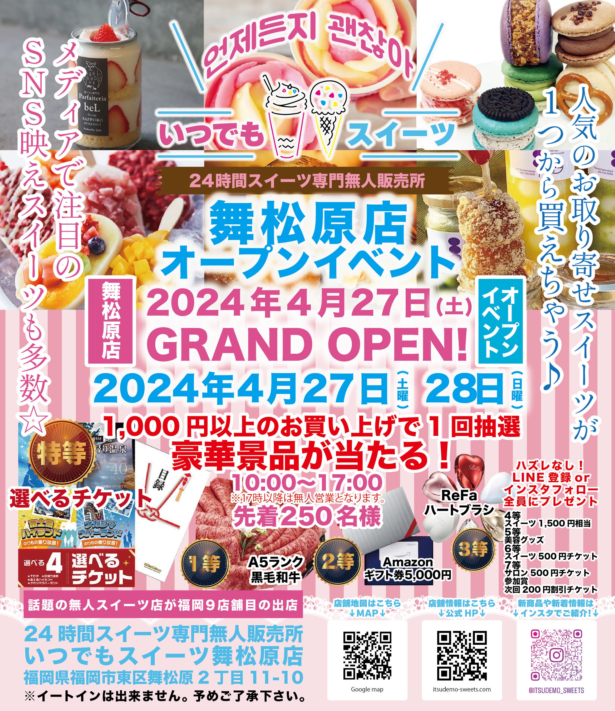 店舗名 :〜無人スイーツ販売店〜「いつでもスイーツ舞松原店/福岡県福岡市」