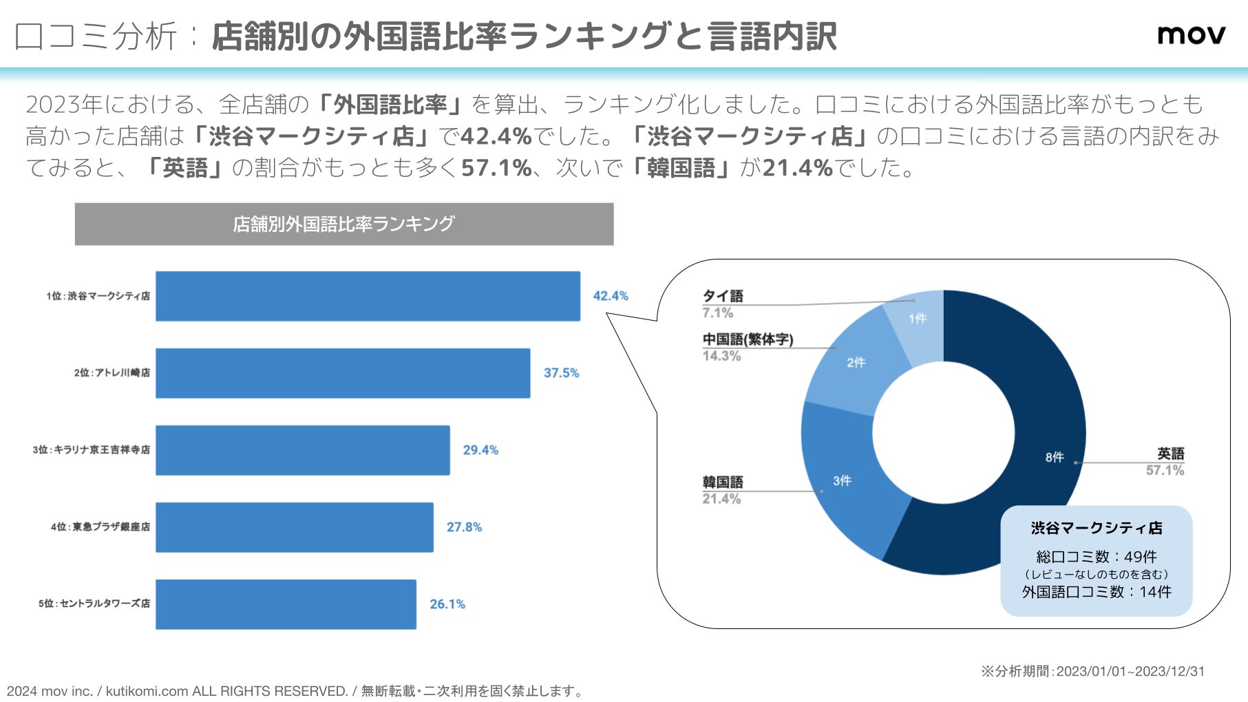 2023年における、全店舗の「外国語比率」を算出、ランキング化しました。