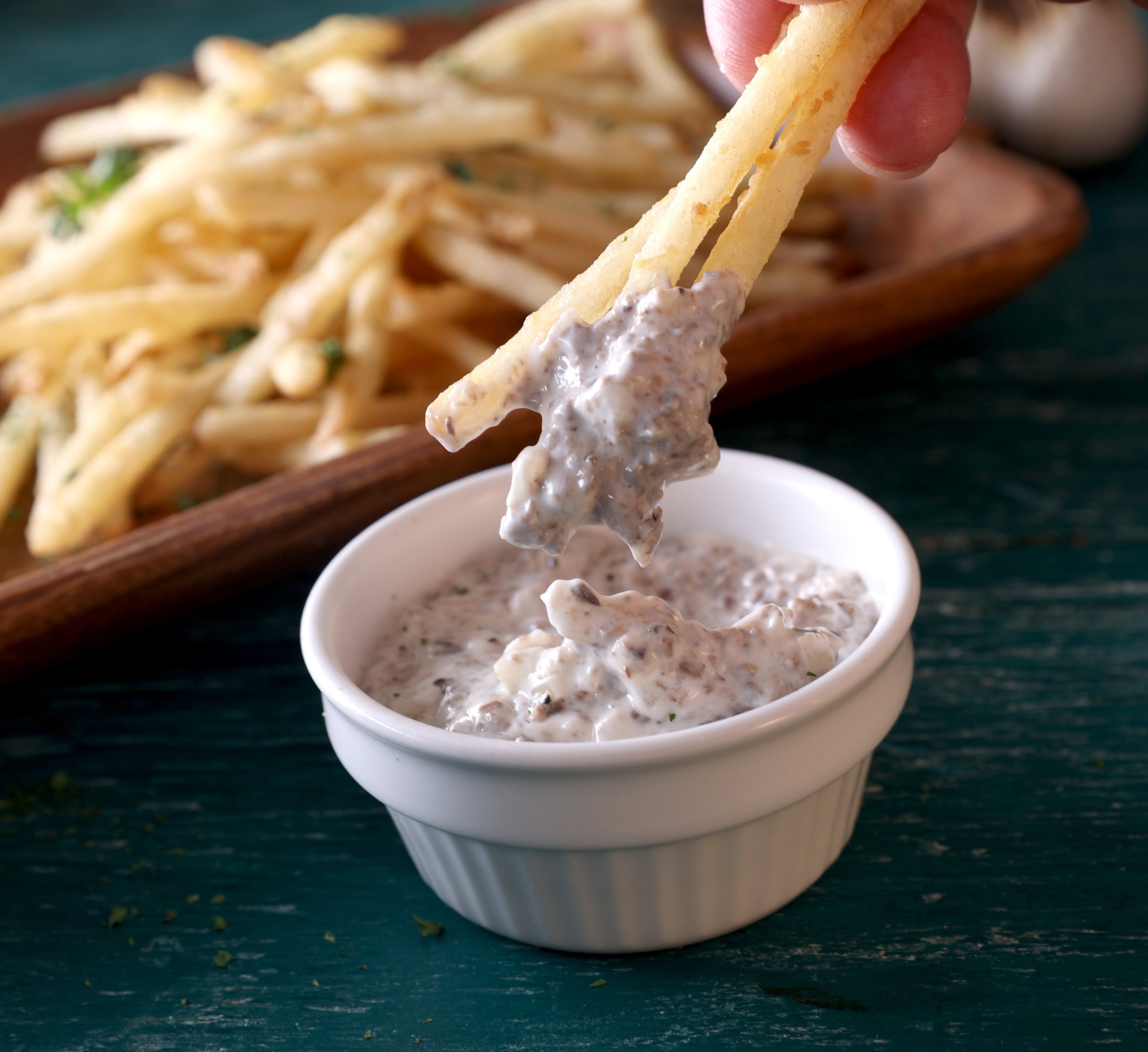 詳細 :『トリュフアイオリバーガー』に使用する特製ソースを揚げたてのフレンチフライにディップしてお召し上がりください。