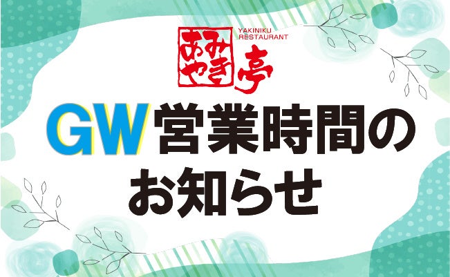 あみやき亭中部・滋賀地区店舗全店のゴールデンウィーク期間の営業について、お知らせいたします。