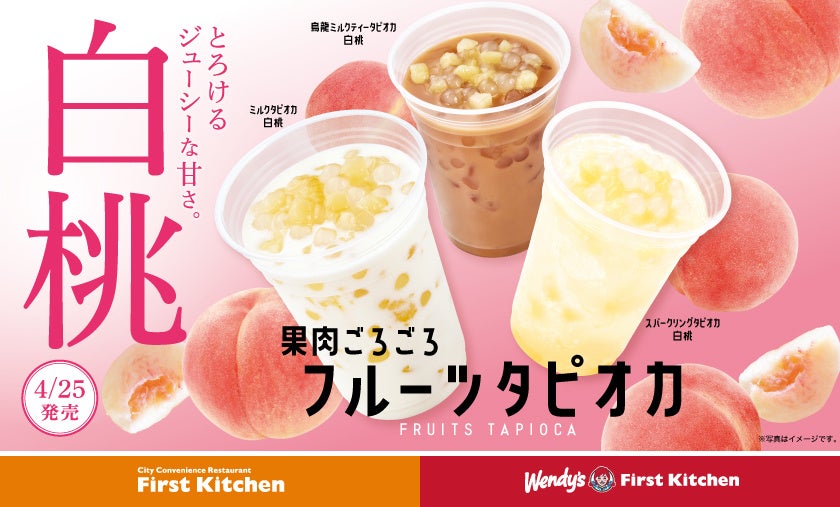 今回新登場の「フルーツタピオカ」白桃 3種の他にも、ミルクやセブンアップ、烏龍ミルクティーをベースに、ストロベリーやマンゴーと組み合わせた「フルーツタピオカ」や、黒糖ラテをベースに、天空の抹茶®や強焙煎ほうじ茶など、本格的な茶葉の味わいが楽しめる「黒糖ラテタピオカ」をラインナップしています。