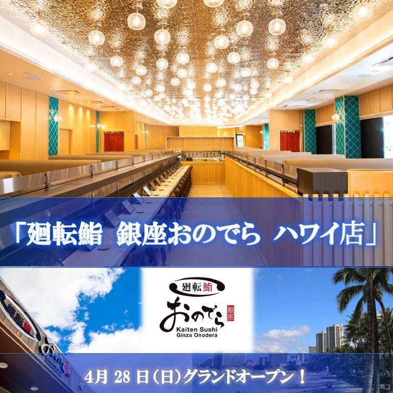 中でも、伝統の江戸前鮨をより多くの方にお楽しみいただけるお店として、2021年10月のオープン以来「廻転鮨 銀座おのでら本店」(東京・表参道)はたくさんのお客様に多大なご愛顧をいただいてまいりました。昨年7月には、関西初出店として世界的な観光都市・京都に回転寿司業態では国内第2号店をオープン。また本年2024年3月9日(土)には、大阪エリアに初出店。続いて4月19日(金)、廻転鮨のセカンドライン第1号店となる「廻転鮨 銀座おのでら 息子渋谷店」が開店。そして来る4月28日(日)、廻転鮨業態の記念すべき海外第1号店となる「廻転鮨 銀座おのでら ハワイ店」がオープン決定となりました。
