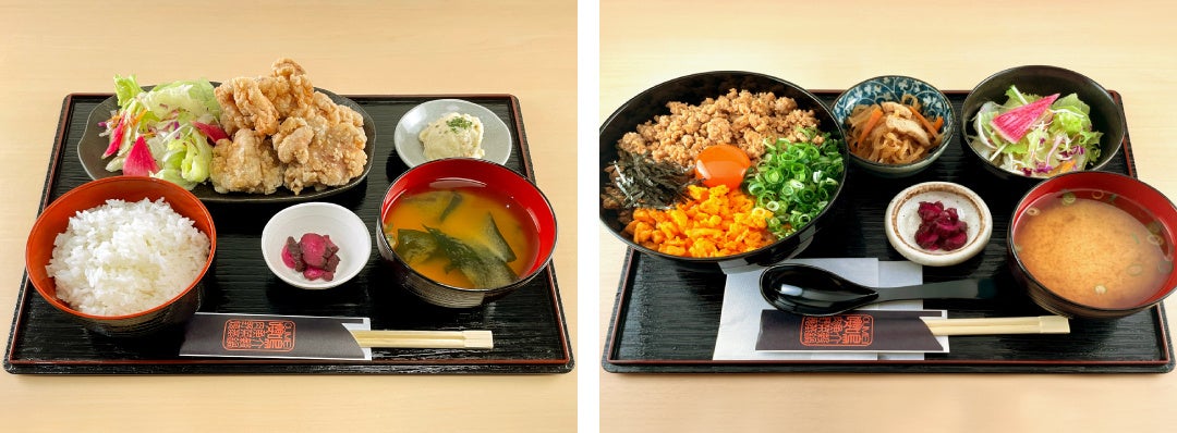 ランチのレギュラーメニューを、それぞれ日替わりで1商品500円で提供いたします。対象商品は曜日ごとに変更予定。人気の「唐揚げ定食」や「濃厚赤たまごの鶏そぼろ丼定食」。さらに4月からの新メニュー、 タイ料理の玉子とじカレーをベースにした、「パッポンカレー」も対象となります。どの曜日にどのメニューが500円になるのかは、インスタグラムで発表します。