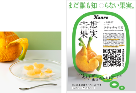 グミ市場は年々拡大を続けており、様々なフレーバーや食感、自由な色使いや形など、多種多様な新商品が発売されています。カンロの「空想果実」シリーズはそんなグミの自由度の高さを活かし、空想上の果実の味や食感をグミで表現した、好奇心を刺激する、これまでにない体験型商品です。商品はHPやSNSと連動しており、まるで本当に幻の果実が実在するかのような徹底した世界観を作り上げています。「空想果実」を口にする時、この“果実”は一体何ものなのか、今自分は何を食べているのか。イメージを膨らませながら、空想の世界とまだ見ぬ果実の味わいをお楽しみいただけます。