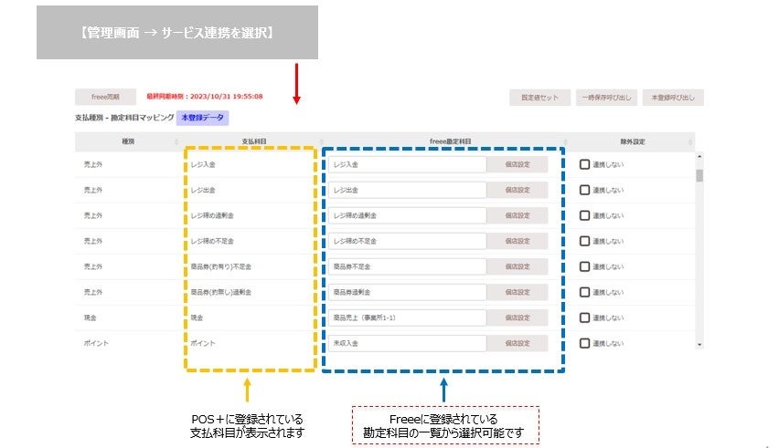 POS+の支払科目ごとにfreee勘定科目を指定する事ができる機能です |