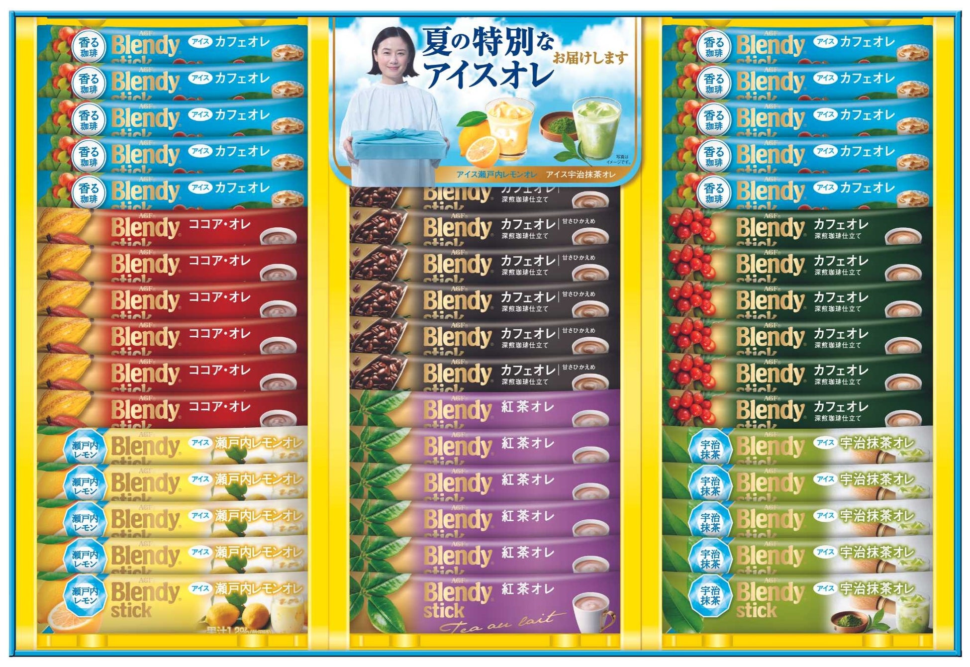 定番のカフェオレ、紅茶オレ、ココア・オレに加え、冷たい水で作れるギフト限定のアイスカフェオレと爽やかな夏季限定フレーバーが楽しめます。