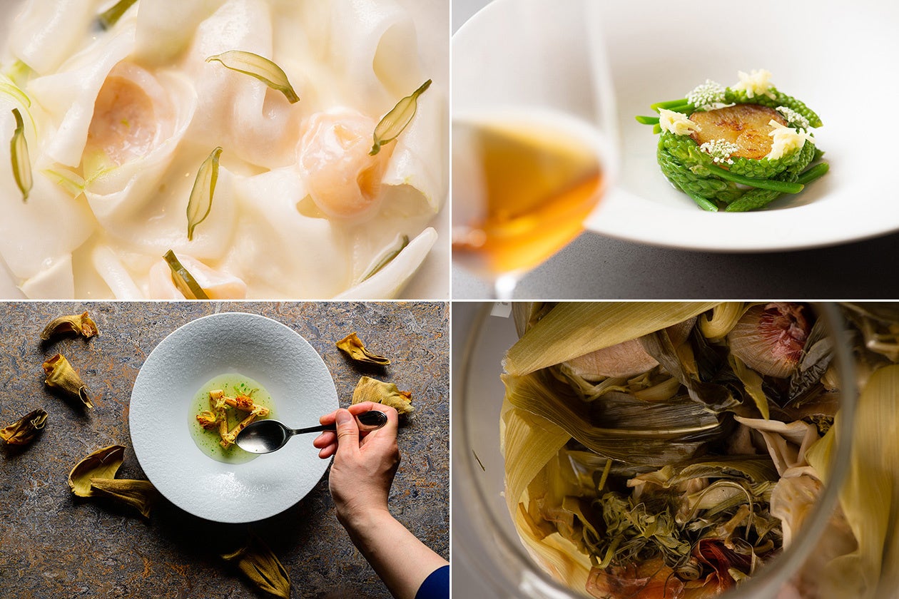<コースメニュー:シグネチャーディッシュ「ゴミのスープ」など>